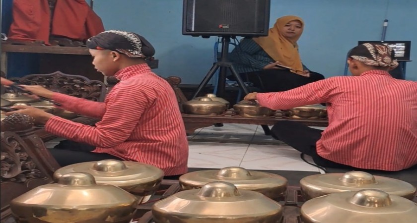 Para peserta didik tampil memukau dengan mengenakan pakaian tradisional gagrag ngayogyakarta, menambah semarak suasana. Dengan penuh semangat, mereka menabuh gamelan, menghasilkan alunan musik yang indah dan khas.